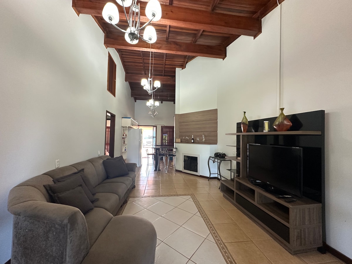 Leve sua família a este ótimo lugar com muito espaço para se divertir. Casa totalmente equipada, com vista da cidade e do campo. Gostarás de fazer um churrasco no nosso quintal em uma noite estrelada de verão e de se refrescar na nossa piscina iluminada pelo sol e pela lua. No inverno, a lareira te espera para aquecer corações em noites frias. Há camas para 10 pessoas, 1 berço e colchões (1 de solteiro e 1 de casal) para mais 5 pessoas no chão. Para visitantes extras R$ 50,00/pessoa sem posar.