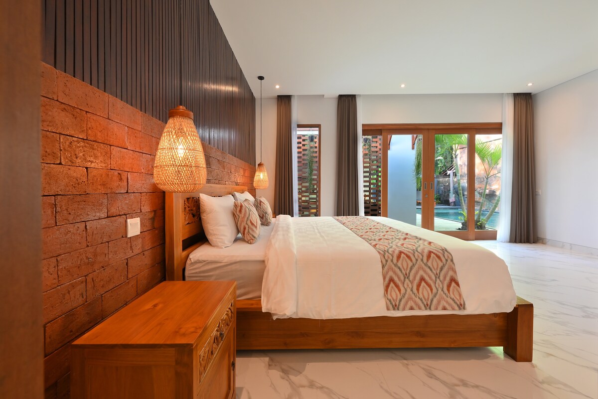 Pobjegnite u našu potpuno novu vilu 1 BR sa privatnim bazenom na vrhunskoj lokaciji u srcu Čanggua. Ovo je savršena vila za parove ili putnike koji putuju sami i koji vole da istražuju poznato mjesto u Čangguu. Samo 3-5 minuta hoda do odličnog restorana, prodavnice, teretane, zajedničkog rada, pilatesa, kafića i barova. Udaljena je samo nekoliko minuta od poznatih plaža kao što su Nelayan, Batu Bolong, Canggu Beach. Ova vila ima luksuzni bračni krevet, kupatilo, kuhinju, bazen, dnevni boravak i otvorene stambene prostore za opuštanje pored privatnog bazena