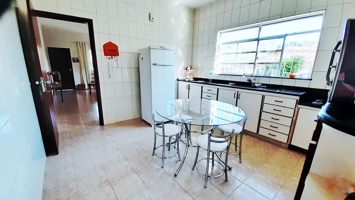 Opustite se sa cijelom porodicom u ovom mirnom smještaju. Udaljen je 3,5 km od UFV, 300 metara od glavnog puta, 6 km od centra Viçosa/MG Spoljašnji prostor: Imamo roštilj, peć na drva, šporet, mini bazen, dečiji trampolin Unutrašnji prostor: 4 kreveta, 1 dodatni dušek za spavanje na podu, kauč, zajednički TV, Wi-Fi, friteza, misteira, blender, lonac za kuvanje, lonac za pirinač, peškiri, čaršavi, jastuci, šampon, regenerator, sapun. Ne iznajmljujemo zabave.