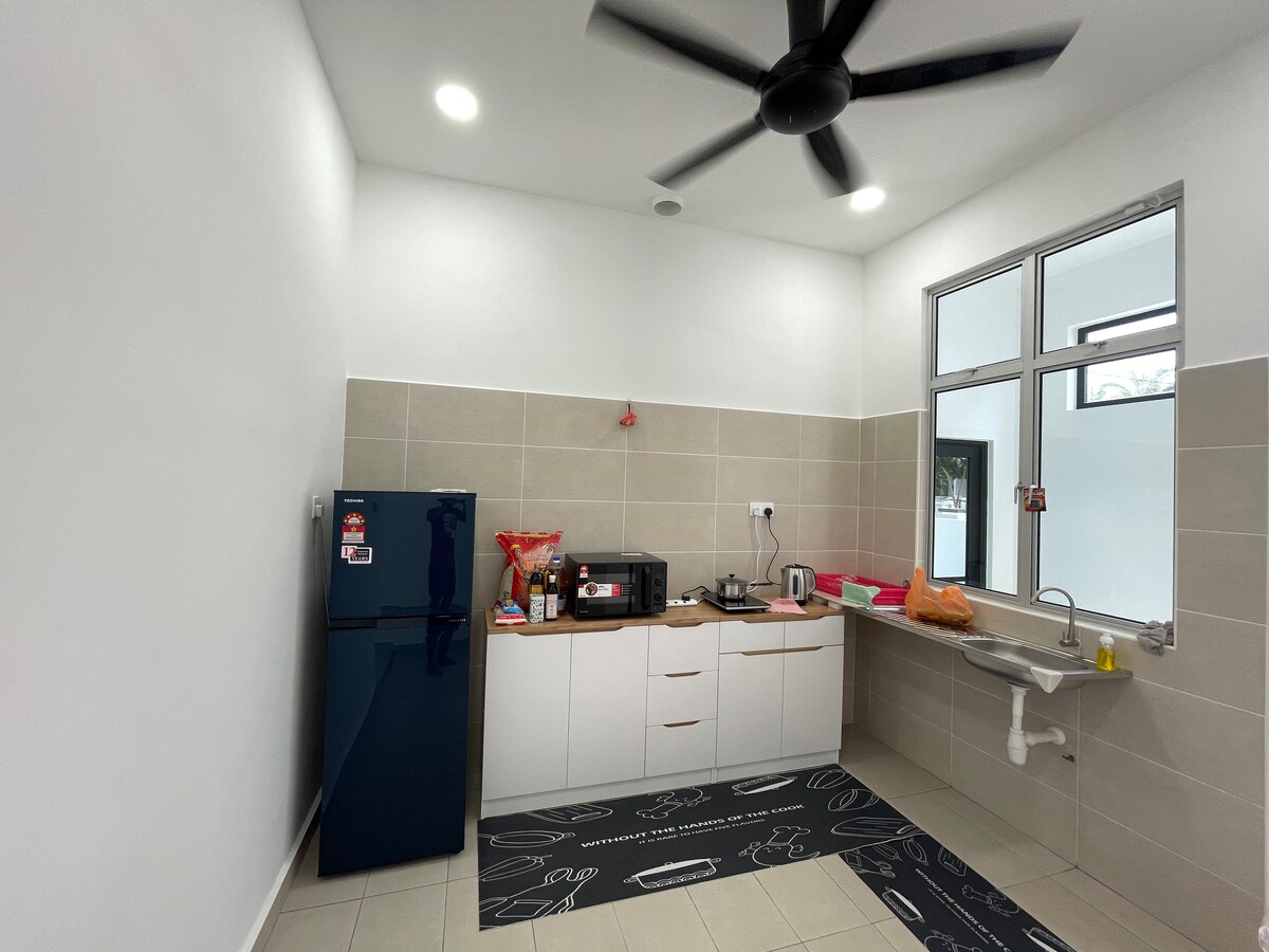 Jednospratna kuća u nizu u Tamanu Bukit Perdana 2, Batu Pahat, Džohor Čista i prostrana kuća u starijem stilu sa 3 spavaće sobe. Osnovni smeštaj za goste sa jednostavnim očekivanjima. * Samouslužni ulazak * Jednospratna kuća u nizu (cela jedinica) * 3 spavaće sobe, 2 kupatila (jedno pored kuhinje sa tradicionalnom WC-šoljom za čučanje) * 4 klima-uređaja * Nadstrešnica za automobile za najviše 2 automobila * Besplatan Wi-Fi sa 100 Mbps * Google TV od 55” sa BESPLATNIM Netflix-om U blizini: * 2 minuta vožnje do prodavnica 99 Speedmart i Mr DIY * 11 minuta vožnje (4,6 km) do tržnog centra BP Mall