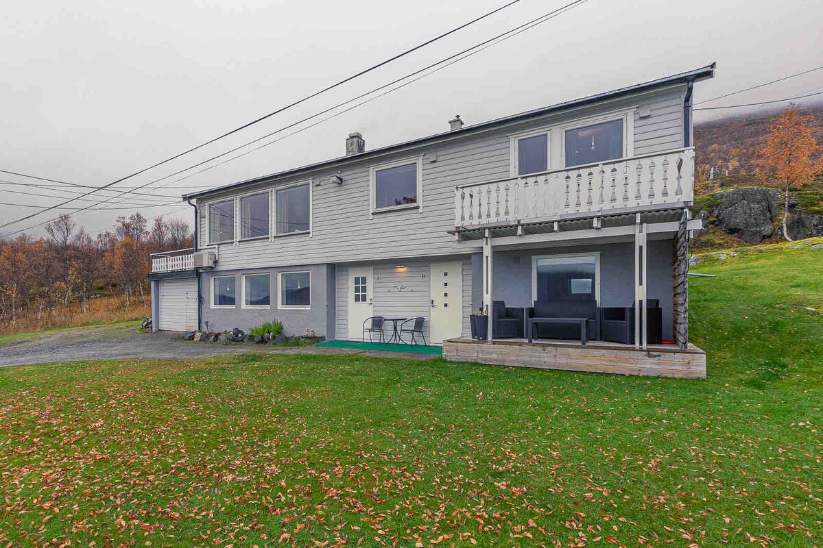 Spectacular new build house (2018) in a lovely, quiet area with a beautiful view to the fjord/sea, mountains and forest in Kvaløya /Tromsø. You can watch the beautiful northern light / aurora borealis from the huge window (10 sqm), sitting in the living room with a cup of tea or coffee in your hand:-) This is a perfect place for tourists who wants to see the northern light, whales in the fjord at winter, hiking/ skiing in the mountains or everything else you want in this lovely city.
