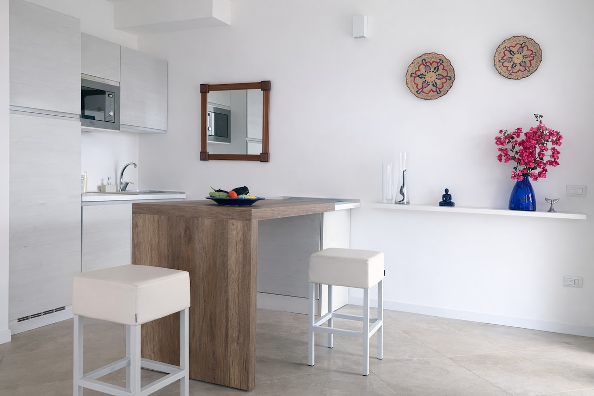 Novi stan sa privatnim tremom i predivnim pogledom na baštu. Dvokrevetna spavaća soba sa garderoberom, glavno kupatilo sa tušem, WC šolja, veliki dnevni boravak sa čajnom kuhinjom. Dizajnerski namještaj s nekoliko detalja sardinijskog namještaja i izrade. Prebivalište je okruženo zelenilom na samo 10 minuta od centra grada, u blizini glavnih usluga i plaža, ali istovremeno daleko od saobraćaja i buke.