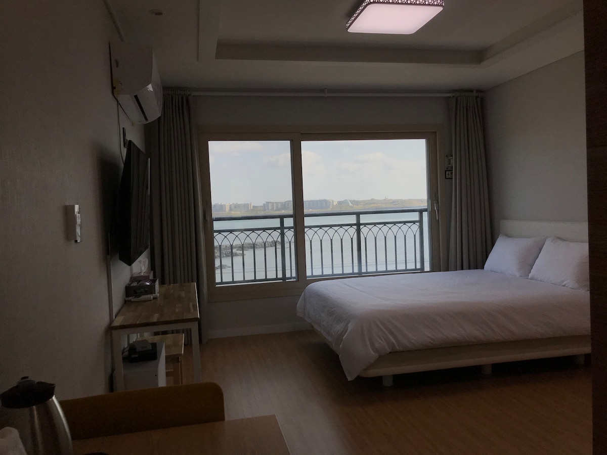 Moderan smeštaj sa pogledom na okean ugošćava 2 odrasle osobe i ne prima dodatne goste Postavljen je jedan veliki krevet, a nema dodatne posteljine Svi prozori u sobi imaju roletne. Zabranjeno je pušenje u zatvorenom prostoru, nedolično ponašanje i paljenje sveća. Ne možete da povedete kućnog ljubimca Imamo Samsung televizor sa mogućnošću pomeranja, CD plejer i Marshall Bluetooth zvučnik, pa vas molimo da uživate u njima. Smeštaj Ocean View nalazi se u Pjongde-riju, u opštini Gudžva, gde je ostalo mnogo kamenih kuća, a udaljen je 50 minuta vožnje od aerodroma na Džedžu