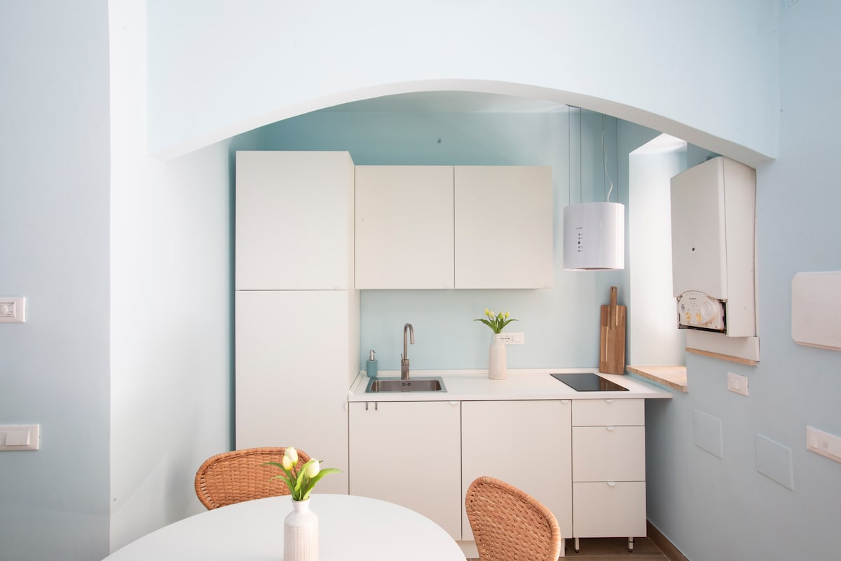 I have recently transformed this place in Gaeta Medievale in a cozy, modern apartment with all necessary confort . Elegant design, hand made tiles designed by me, the large white stones on the floor and the amazing views over the bay give to this space a strong mediterranean feeling. Each room having its ensuite bathroom, the property is equally suitable for a family or for couples /friends traveling together.
