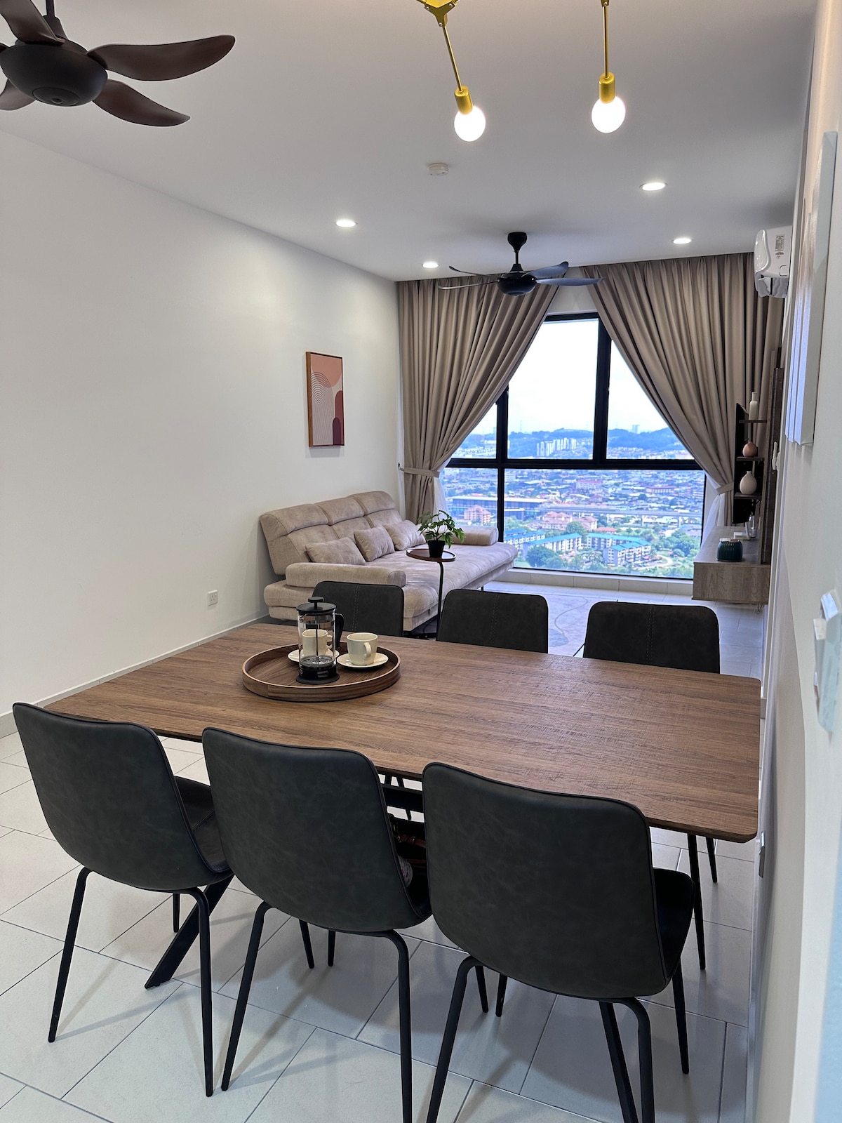 🍿NETFLIKS+TV u dnevnoj sobi i glavnoj spavaćoj sobi🍿 Želimo vam dobrodošlicu u naš luksuzni Airbnb @ Meta Residence, Seri Kembangan! Stan je dizajniran da stvori mirnu i privlačnu atmosferu, savršenu za opuštanje nakon posla ili razgledanja. Ovaj potpuno novi apartman sa 3 spavaće sobe i 2 kupatila je takođe savršen za poslovne putnike ili grupe prijatelja. Uživajte u besplatnom Wi-Fi mrežom, mašini za pranje i sušenje veša i pogodnosti potpuno opremljene kuhinje. Atrakcije u blizini: * Farma u gradu (50 m) * Tržni centar Aeon * IOI City Mall * MAEPS