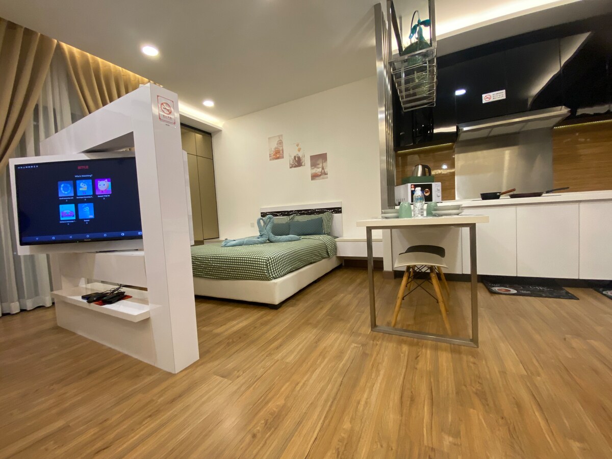 🍿NETFLIKS+TV u dnevnoj sobi i glavnoj spavaćoj sobi🍿 Želimo vam dobrodošlicu u naš luksuzni Airbnb @ Meta Residence, Seri Kembangan! Stan je dizajniran da stvori mirnu i privlačnu atmosferu, savršenu za opuštanje nakon posla ili razgledanja. Ovaj potpuno novi apartman sa 3 spavaće sobe i 2 kupatila je takođe savršen za poslovne putnike ili grupe prijatelja. Uživajte u besplatnom Wi-Fi mrežom, mašini za pranje i sušenje veša i pogodnosti potpuno opremljene kuhinje. Atrakcije u blizini: * Farma u gradu (50 m) * Tržni centar Aeon * IOI City Mall * MAEPS