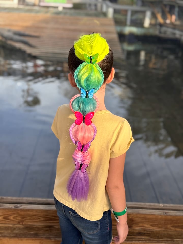 Овај магични стил почиње нежном плетеницом у облику круне која уоквирује лице попут тијаре, а води до разиграног, високог репа од плетеница у облику мехурића.Реп се може скинути ради лакшег преласка између изгледа - савршено за дане у парку и принцезине вечери!