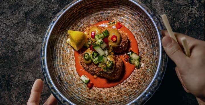 Uživajte u predjelima od plantaže i karfiola, krvavom pireu sa glavnim jelom od suya bavette i vrućem desertu od milo braunija.