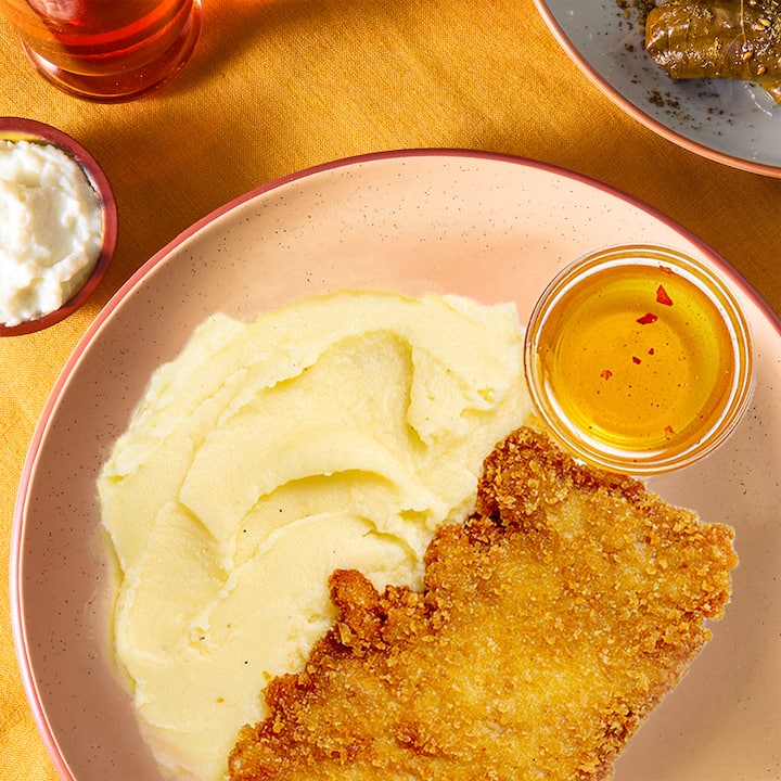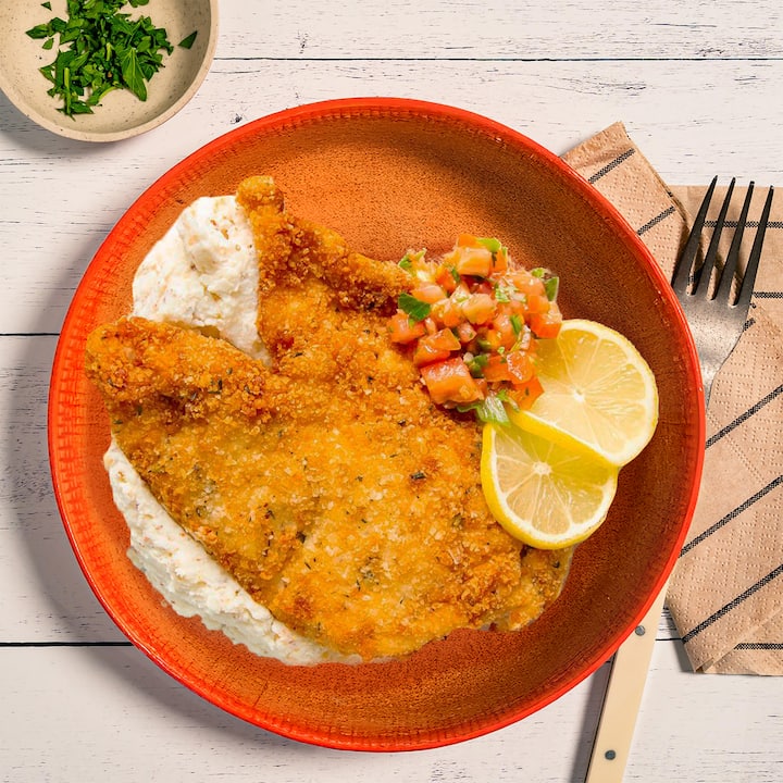 Kuvar Kris Ratel stručno kombinuje italijanske i nemačke specijalitete sa tankim pilećim prsima prženim u tiganju do zlatne boje, posluženim uz pire krompir sa senfom i salatu od paradajza sa limunom, peršunom i mladi luk. Uključuje 1 obrok po gostu.