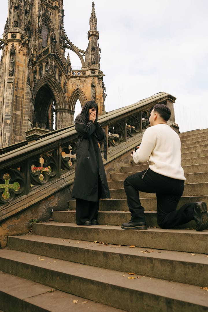 Želite da je zaprosite u Edinburgu? Tu sam da vam pomognem! Pomoći ću vam da isplanirate prosidbu, gde da se nađete, daću vam preporuke za područje za proslavu posle toga i fotografisaću u tom području!