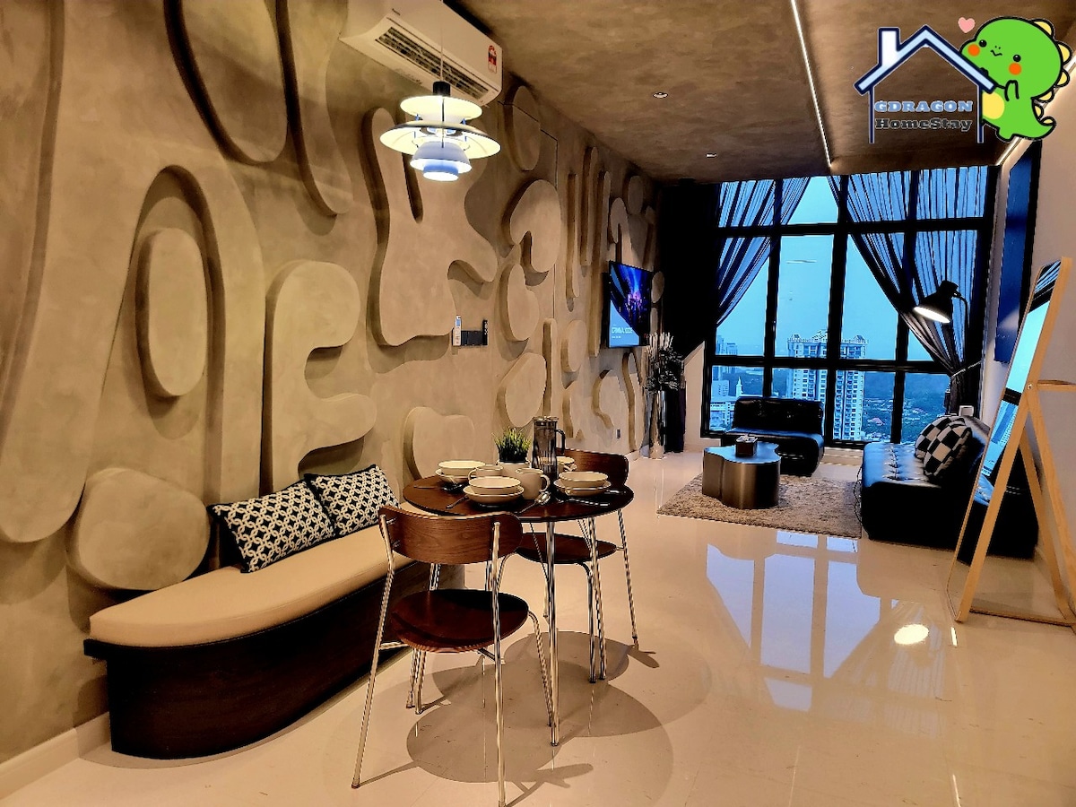 Twin Galaxy Residence! Dobro došli u našu prostranu/zelenu i udobnu studio jedinicu sa nevjerovatnim pogledom na grad❤️, savršenu za par, male porodice, poslovne putnike/turiste za 2/3 osobe. Naša jedinica se nalazi u srcu grada Johor Bahru, mjesto je okruženo raznovrsnim restoranima F&B, porodičnim spa/masažnim centrom, praktičnom prodavnicom, noćnim životom itd. Dođite da uživate ^^ Kuća je opremljena krevetom veličine 1 x kraljicom, sofom (takođe kaučem na razvlačenje), namjenskim radnim prostorom i kuhinjom sa dnevnom osnovnom opremom :)