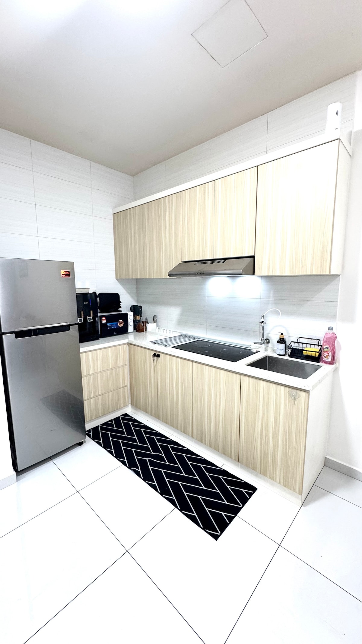 This is a spacious 2Bedroom unit perfectly fit for guests up to 5 pax with total of 1 king size bed 1 queen size bed 1 single bed High floor with high view. 1. Basketball Court 1. Gym Room 2. Function Hall 3. Lounge 4. Library 5. Manicure Shop 6. Mini Theatre 7. BBQ Deck 8. Swimming Pool 9. Sauna 10. Jacuzzi 11. Game room (Pool Table, PS Room, Darts and more) 12. Laundry 13. Mini Market -Sky Garden Guest are not allow to smoke in the room , please smoke at the balcony if needed
