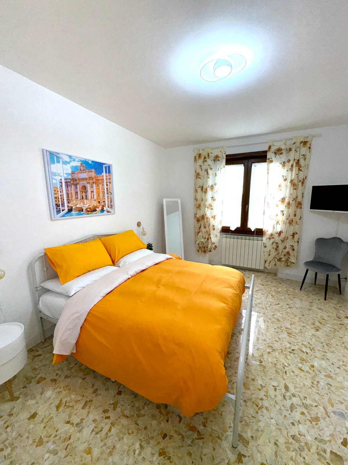 Privatno parking mjesto! Stan u ulici punoj usluga,nekoliko koraka od javnog prevoza do Rima i u blizini velikog parka. Vrlo blizu hrama Rimske Italije i tržnog centra. - Spavaća soba sa klima-uređajem i plafonskim ventilatorom - Dnevni boravak sa stolom, sofom/krevetom, TV-om od 50'',plafonskim ventilatorom,bez klima-uređaja -Kuhinja sa rernom i mikrotalasnom rernom - Kupatilo s prozorom i kadom opremljeno tušem - Balkon sa mašinom za pranje veša i sofom Dostupan je aparat za kafu - vrlo brza internet konekcija.