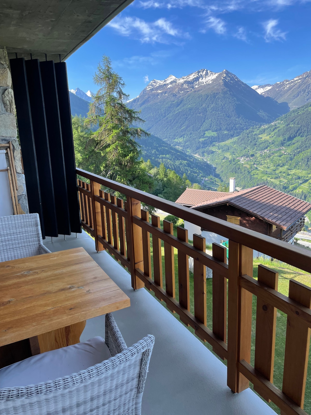 Mirno mesto sa šetnjama usred prirode, na ivici šume. Veličanstven pogled na Valais du Rhône. Mayen je prijatno mesto sa starim škripavim podom, renovirano 2019. godine, danas ima modernu udobnost. Pravo mesto za bekstvo od svakodnevnog stresa.