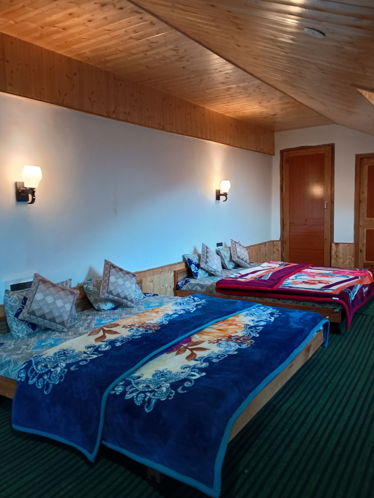 Koliba sa blatom tokom cijele sezone izgrađena u tradicionalnom stilu Himachali sa svim modernim sadržajima. Koliba se nalazi u prelepom voćnjaku na ivici Nacionalnog parka Veliki Himalajski. To je divno mesto za posmatranje svih godišnjih doba, bilo da se radi o snegu zimi, cvetovima trešnje u proleće, voćnjaci prekrivenim voćnjacima ljeti. Porodična kuća za seoske domaćine udaljena je 50 metara od kolibe. Koliba nudi potpunu privatnost i samoću, a domaćini su na pristupačnoj udaljenosti.