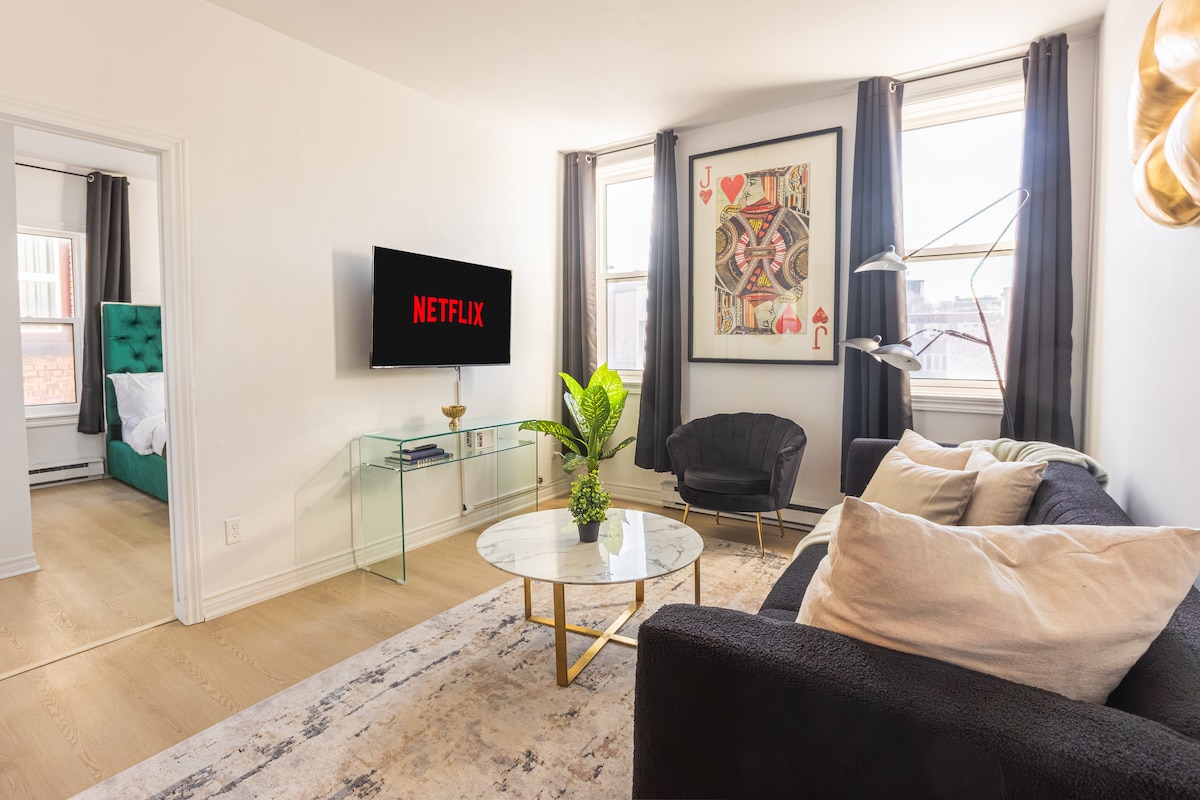 Krenite na putovanje neusporedivog luksuza dok otkrivate naš izuzetni apartman, osmišljen da ponudi odmor koji prevazilazi obično i ostavlja vas osvježenim. Doživite raskošan dizajn, punu spavaću sobu, prostranu dnevnu sobu sa TV-om, brzi Wi-Fi, potpuno opremljenu kuhinju i zadivljujući balkon . Uživajte u povjetarcu uz sunce i roštilju na našem novom električnom roštilju. Pristup našem spoljnom bazenu i hidromasažnoj kadi, bez naknada ili rezervacija. Moguće su dodatne naknade za 30 i više noćenja.