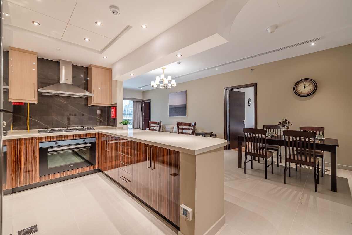 Uživajte u našem besplatnom safariju u pustinji za naše goste.* Naš prostrani, moderni stan u prestižnoj četvrti Dubai nudi savršenu mješavinu udobnosti i praktičnosti. Samo 5 minuta od tržnog centra Dubai i Burdž Kalife, 10 minuta do finansijskog centra Dubai (DIFC) i 15 minuta do marine Dubai. J One, koji se nalazi uz kanal, nudi šarmantne restorane i barove s pogledom na kanal, idealne za dan, večeru i noćni život. Uživajte u praktičnim mogućnostima radnog prostora za rad i opuštanje. * Primjenjuju se odredbe