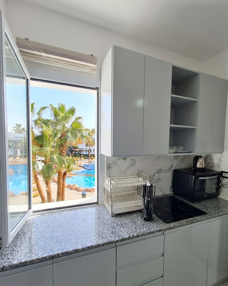 Nudimo potpuno nov luksuzni trosobni apartman u Rivijeri Šarm, koji se nalazi u modernoj zgradi sa bazenom i pogledom na more. Stan je potpuno opremljen: • potpuno novi namještaj, kućanske aparate i posteljinu (2025.); • udobni dušeci od memorijske pene, nova posteljina i peškiri; • nezavisni Sharp klima uređaji u svakoj sobi sa naprednim sistemom za filtriranje vazduha; • brzi Wi-Fi; • dostupna je usluga dostave hrane na kućnu adresu; • prodavnica prekoputa