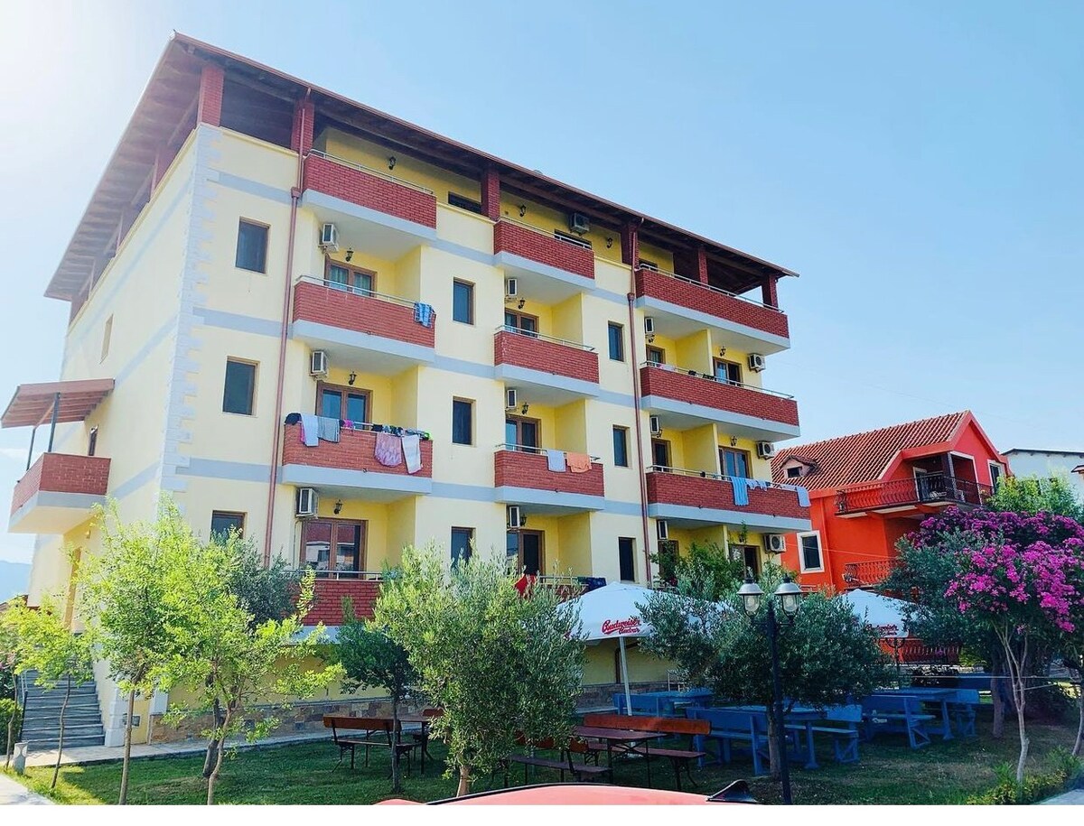 Ky ambient plot stil është pranë destinacioneve që duhen vizituar patjetër.Vend familjar pamje mrekullushme dhe nje qetsi relakuse e detit