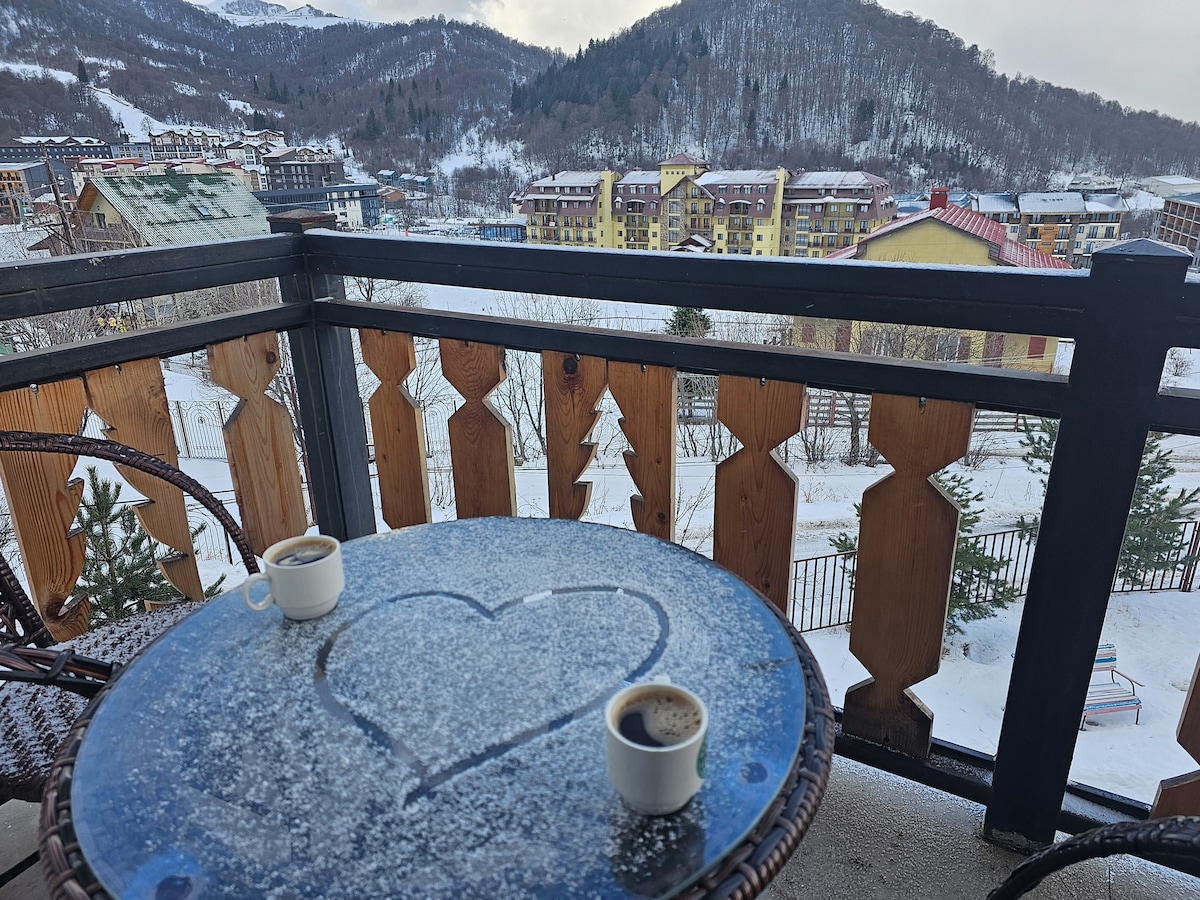 Relax from the tiring daily life in this apartment, which is not only relaxed but also stylish. Every detail is designed for your cozy vacation. Here is brief information: 👉 Mountain View; 👉 The apartment has a comfortable balcony with beautiful views; 👉 Accommodation for up to 3 people; 👉 30m to ski area; 👉 Self check in; 👉 Cleaning upon arrival; 👉 Free Ski Depot; 👉 Free WIFI; 👉 Transfer to Gudauri and back on request ( additional payment)