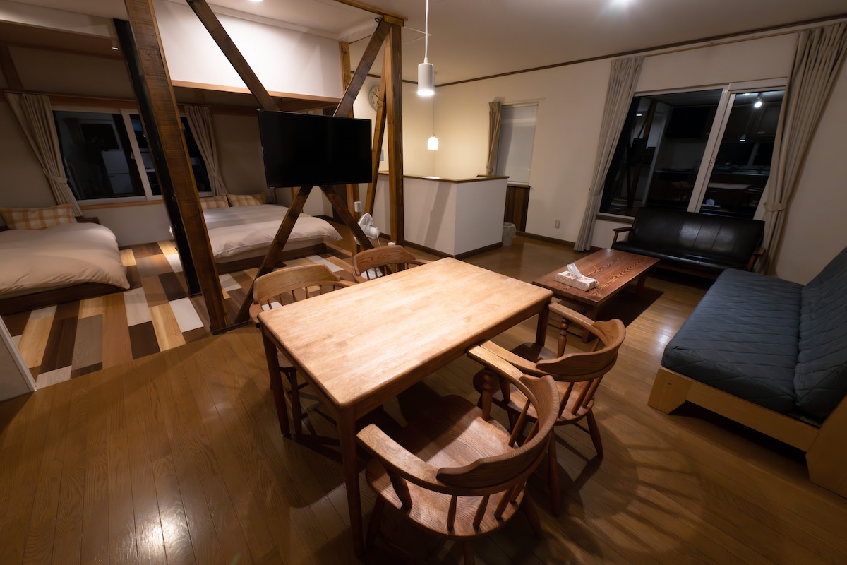 Udaljen je 15 minuta vožnje od aerodroma Asahikava i 3 minuta hoda od stanice Kitamiei.Sa prozora se vidi tugovalni voz sa jednom stazom.U potkrovlju se nalazi i crtani film, knjige, kolekcija ghibli slagalica koje je napravio vlasnik i projektor gdje možete uživati u filmovima i animeu na velikom ekranu.Ljeti i jesen možete uživati i u roštilju napolju.Tu su i uređaji za kuvanje, tako da možete lako da kupite sastojke i kuvate.Vlasnik je u blizini, tako da sam vam uvijek na raspolaganju ako imate bilo kakvih pitanja.Imamo pse, mačke, koze, patke i piliće.Ako budete imali sreće, možda ćete moći da komunicirate. Doručak je u osnovi uz onigiri. Možete da budete bezbrižni čak i za jednu osobu.Navedena cijena je za 4 osobe.Ako ste sami, to će biti cijena➗ 4 od navedene cijene.Naravno, dvije ili tri osobe su dobrodošle.Nudimo popust od pete osobe.Ne ustručavajte se da svratite.