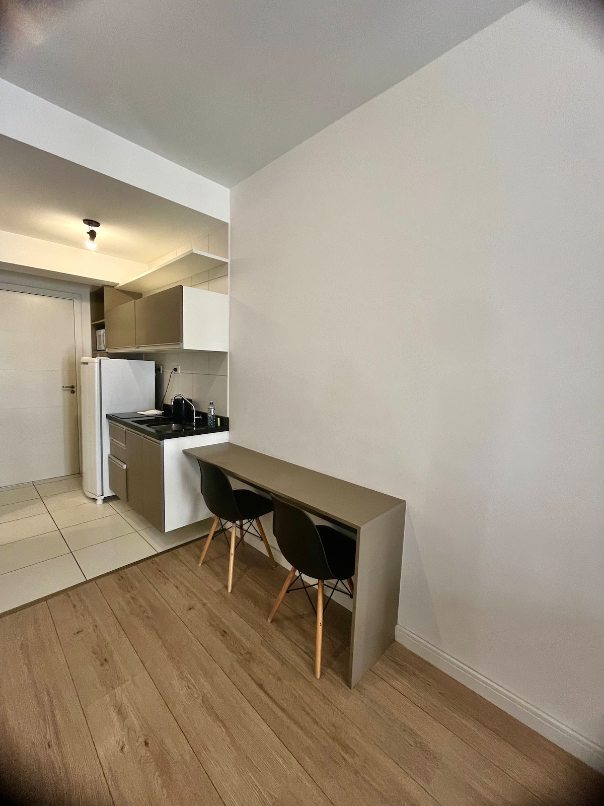 Bem-vindos. Este studio recém-inaugurado foi preparado com carinho para que você se sinta em casa em Curitiba. Os tons neutros, a marcenaria funcional e a iluminação suave deixam o ambiente leve e tranquilo. Aqui você pode descansar, trabalhar com calma e aproveitar a cidade com praticidade. O MUV Residence está em uma região central, com fácil acesso a hospitais, universidades, restaurantes e atrações locais. Este studio não possui garagem, mas há a opção de estacionamento pago no prédio.