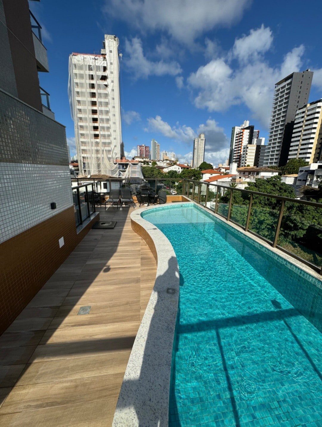 Udoban dupleks sa dva privatna apartmana i privatnom terasom sa bazenom sa pogledom na Baja de Todos os Santos. Nalazi se u šarmantnoj ulici sa restoranima i kafićima. Napomena: Stambeni objekat. - Dozvoljeni su samo registrovani gosti — nema posjetilaca. Novčana kazna: 200,00 BRL po osobi/danu. - Smanjite buku prilikom ulaska/izlaska iz zgrade, posebno noću (npr. glasni glasovi, lupanje vratima). Par živi u studiju pored ulaza u zgradu.