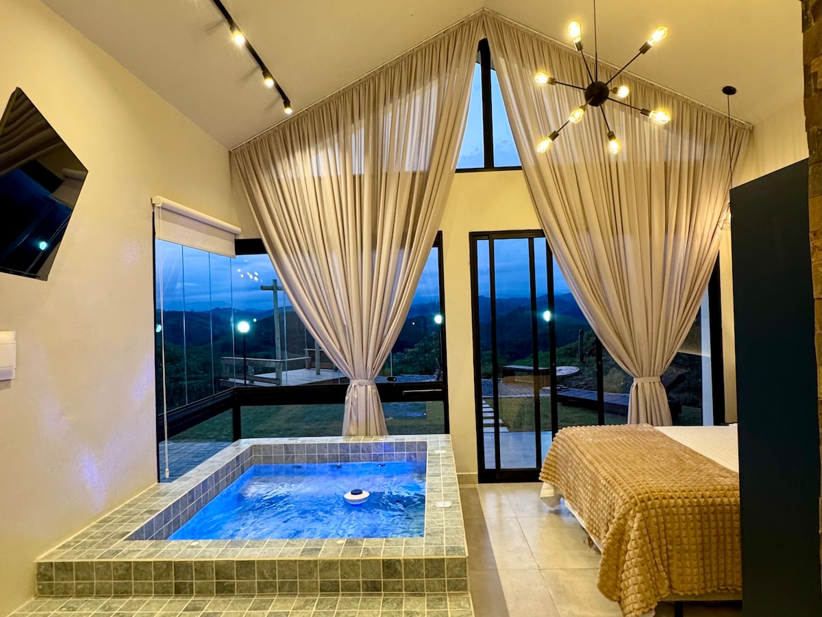O Chalé Jardim de Monet está preparado com todo conforto, aconchego e uma vista exuberante. Com vista panorâmica para as montanhas, jacuzzi interna aquecida com hidromassagem, cama queen size, lareira externa, balanço infinito com deck, cozinha completa com utensílios, TV 43", Wi-Fi, Alexa, principais streamings, roupões e estacionamento. Venha relaxar em meio à natureza, no coração de São José dos Campos. Fácil acesso, estamos próximos ao Centro e a Monteiro Lobato.