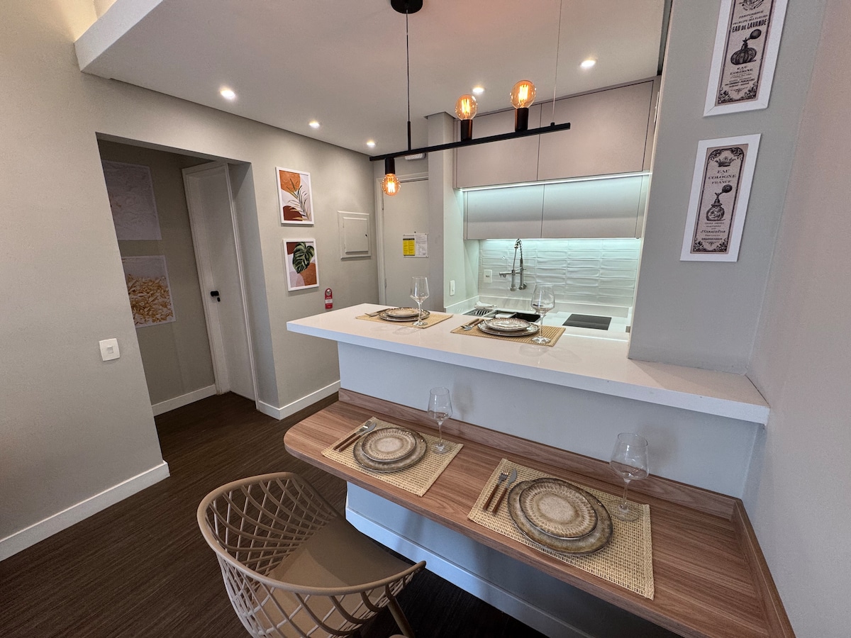 Flat muito espaçoso e totalmente equipado com 56m² divididos em 3 ambientes para descanso, trabalho e laser! Localizado no Hotel Summit Flat Service que tem no terraço um restaurante da famosa franquia Pink Elephent de onde terá a melhor vista panorâmica em 360° da cidade. Nas áreas comuns vários lounges decorados, sala de café e acadêmia com equipamentos de última geração além de um belíssimo elevador panorâmico Com privacidade e segurança de acesso direto ao andar pela garagem no subsolo