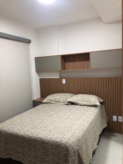 "Super aconchegante, ambiente decorado e mobiliado, ambientes espaçosos e arejados, apartamento com sacada, cortinas com blackout. Praticidade com serviços Day Use, 01 vaga de garagem com manobrista, para pequenas ou longas estadias. Comodidade e segurança para que sinta-se em casa." “Troca de banho e cama disponível a um custo de R$50,00 pagos na recepção.” TV temporariamente sem wifi ==Imóvel para uso exclusivo residencial não podendo ser utilizado para fins comerciais de nenhum tipo==