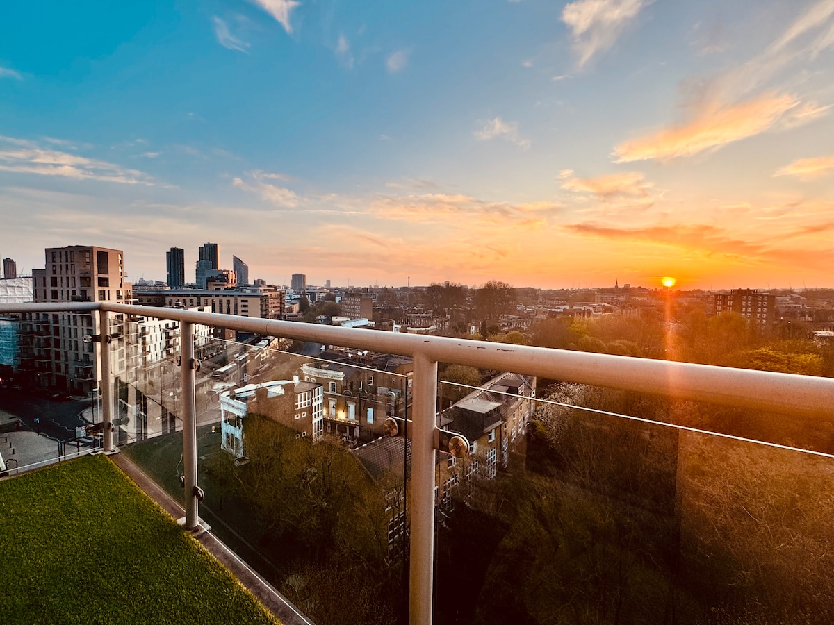 Dobro došli u naš zadivljujući penthaus u Londonu. Uživajte u pogledu od 180 stepeni na horizont Londona sa svoje privatne krovne terase. Savršeno se nalazi za istraživanje celog grada, sa podzemnim prevoznim vezama, sve u kratkoj šetnji. Zgrada gleda na Regentov kanal i nalazi se direktno nasuprot parka Šordič. U zgradi se nalazi i picerija prikladna za porodice, kafić, teretanu i supermarket. *Primjenjuju se dodatni kućni red, pročitajte ga prije nego što rezervišete.