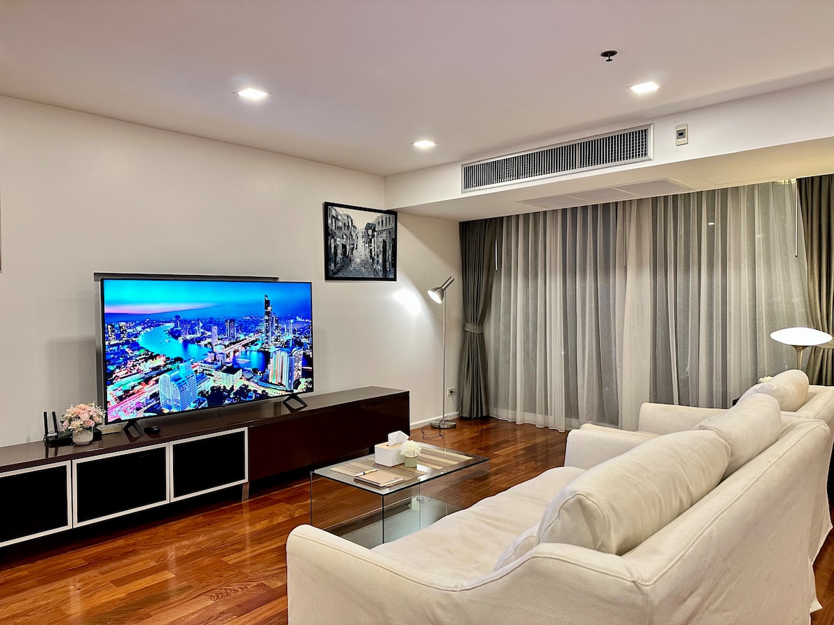 ***RENOVIRANO 2025.*** Ovaj izuzetno veliki luksuzni apartman sa 3 spavaće sobe nalazi se u srcu Sukhumvit Soi 11, najuzbudljivije ulice Bangkoka za noćni život, restorane i barove na krovu. Prostran, elegantan, spaja privatnost doma sa kvalitetom i uslugom butik hotela. Uživajte u svakodnevnom čišćenju, posluzi u sobi, podršci konsijerža i pristupu bazenu na krovu i teretani koja radi non-stop. Samo 5–10 minuta do Nana BTS, 7/11, supermarketa i odlične ulične hrane.