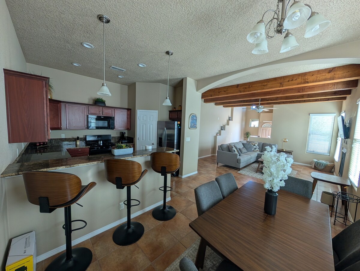 Uživajte u lakoći i praktičnosti ovog kupatila sa 3 spavaće sobe i kupatila koja se nalazi na samo nekoliko minuta od jezera Elephant Butte. Potpuno ograđeno dvorište uključuje privatnu i prostranu terasu sa slikovitim pogledom na planine. Nakon dana provedenog na jezeru, uživajte u roštiljanju uz večeru u sumrak i pijuckanju hladnog pića u kuhinji na otvorenom. Veliki prilaz pruža dovoljno parkinga za sve vaše igračke. Priključak za kampere od 30 ampera je dostupan uz doplatu. Nema pristupa garaži.