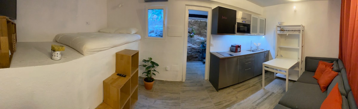 Potkrovlje sa 2 spavaće sobe (75 m2), bašta (150 m2), terasa sa krovom, okružena prirodom, zaštićenim pejzažom Bandame. Potpuni mir i udobnost, samo 12 minuta od grada i plaže. Prikladno za parove ili porodice koji putuju sa 1-2 deteta. Opustite se i poslušajte zvukove ptica. Ili ga iskoristite kao bazu za istraživanje ostatka ostrva. Jednostavno i besplatno parkiranje na ulici pored objekta. Prodavnice, restorani, apoteke i javni prevoz udaljeni su samo 3 minuta hoda.