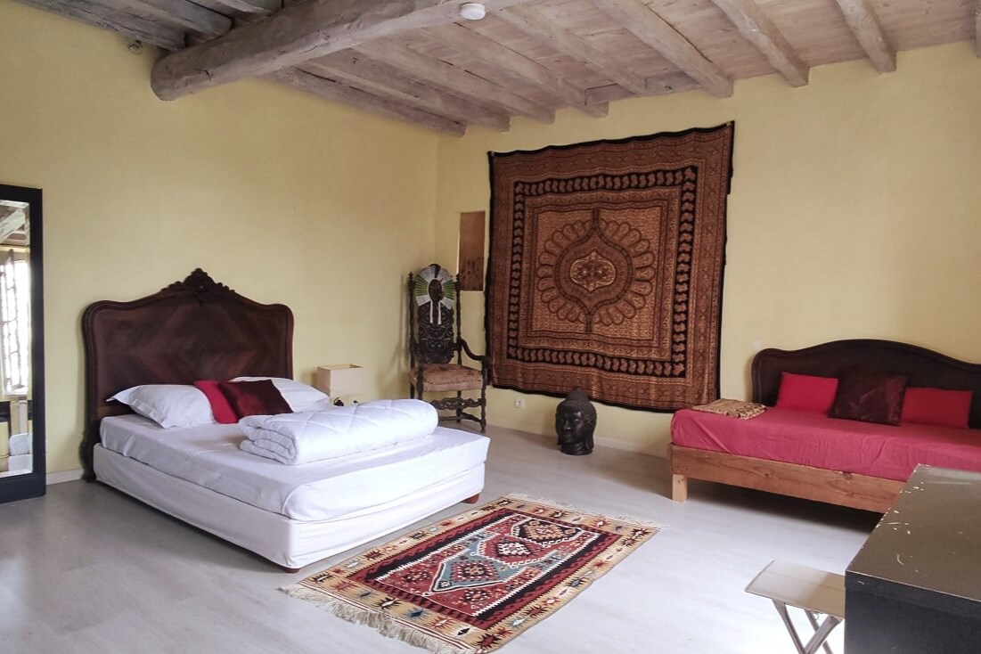 Kuća karaktera 1850. godine sa parkom sa pola hektara . Kratko igralište sa povrtnom baštom za decu od 3 do 12 godina, ljuljačke, tobogan za bebe i minijaturni magarci opcioni đakuzi i masaže u sobi. Blizina svih sadržaja: 30 metara prodavnica namirnica 100m restorani pekare za duvanu, frizerski salon. Pravimo sto d 'hôtes i doručkujemo sa domaćim džemovima i svježim jajima dnevnog povrća iz vrta peradi i domaćim zečevima.