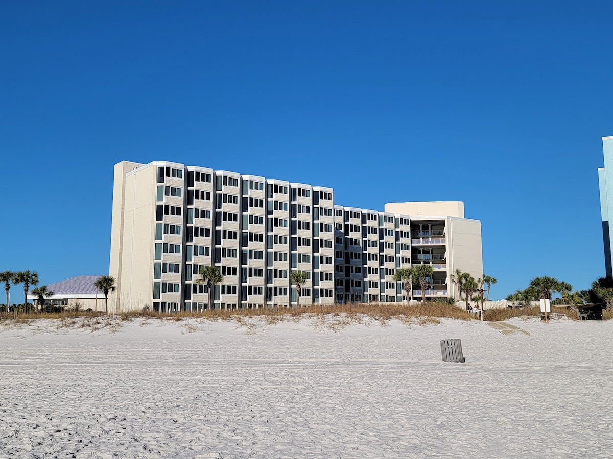 POGLED NA ZALIV... PRISTUP PLAŽI...STAN NA PLAŽI..BESPLATAN WI-FI! Dobro došli! Zamislite da sedite na balkonu i opuštate se, gledate u prelepi pogled na Meksički zaliv i slušate talase. Ovaj stan se nalazi NA SAMOJ PLAŽI gde ne morate da brinete o parkingu ili vožnji oko 10 minuta samo da biste bili na plaži. Požurite, rezervišite odmah! Otvoreni datumi ne traju dugo! Postoji samo nekoliko stanova/objekata koji su udaljeni samo nekoliko koraka od bele peščane plaže.