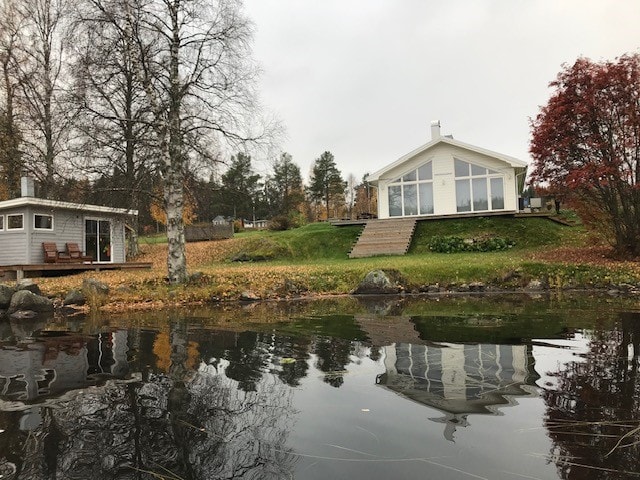 Jednostavan pristup autobusom: Probudite se uz pogled na jezero koji oduzima dah! Odmah pored vode sa predivnim pogledom na čaroliju arktičke prirode. 5 minuta vožnje automobilom od Lulea, 15 minuta autobusom. Parking pored kuće. Klasična skandinavska unutrašnjost sa zidovima od bijele breze i visokim prostranim plafonima. Spavaća soba namještena kao studio sa kuhinjom. Klavir. Potpuno popločano kupatilo sa luksuznom saunom. Savršen odmor: ostanite u krevetu cijeli dan, pogledajte Luleu ili se opustite u prirodi. Iznajmljivanje skija/skejt/bicikla/kajaka. Wi-Fi 500/500.