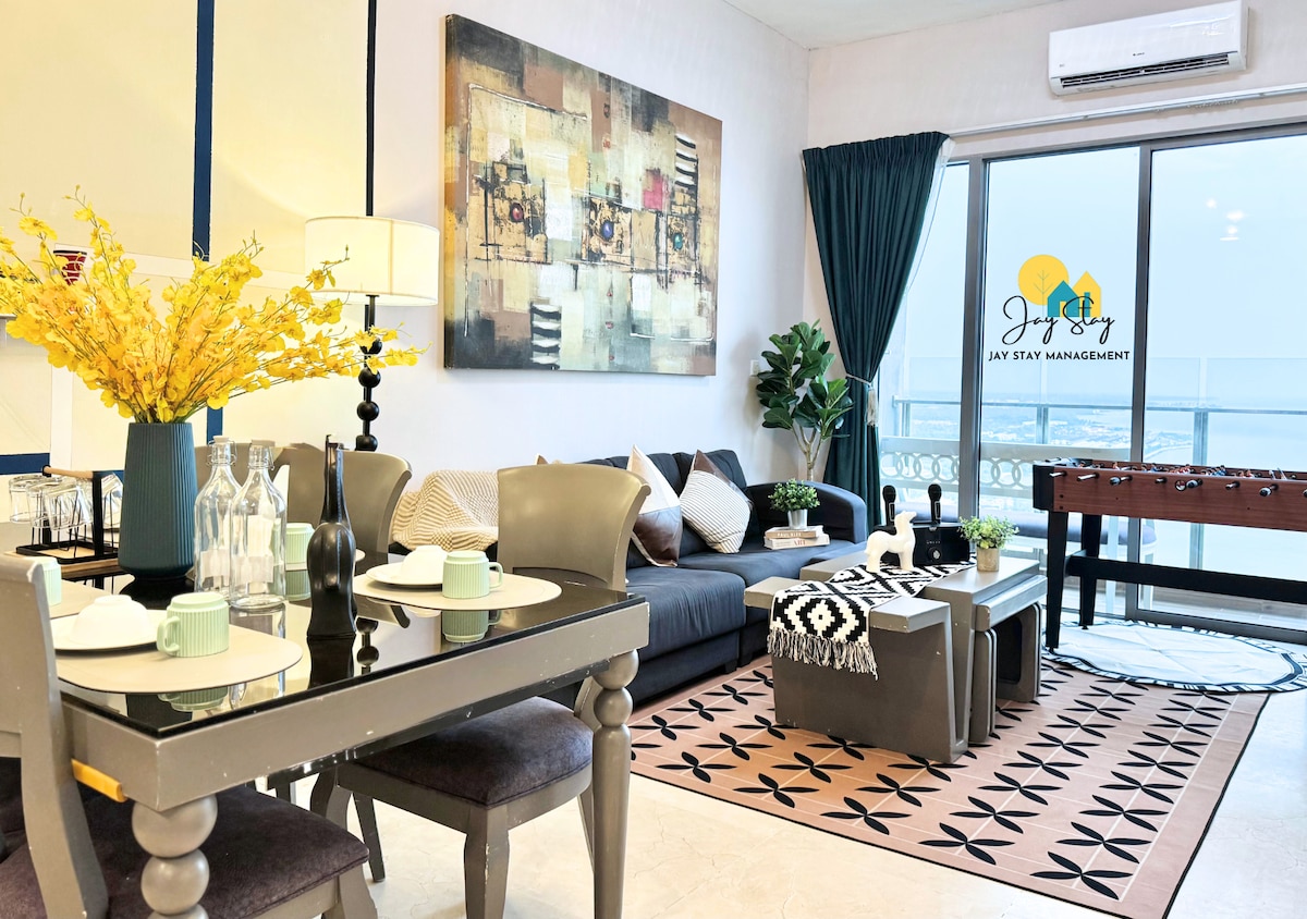 Hi there from Jay Stay! A warm welcome to our 3-Bedroom Seaview unit. This cozy and clean unit have got everything you need for a comfortable stay, be it with your friends or family members. It is centrally located in Melaka, near to the tourist attractions and famous restaurants in Melaka. 5 minutes drive away to well-known tourist attractions (Joker Street, Menara Taming Sari, Melaka River Cruise and etc.) Perfect for travellers either on business trips or leisure purpose! :D