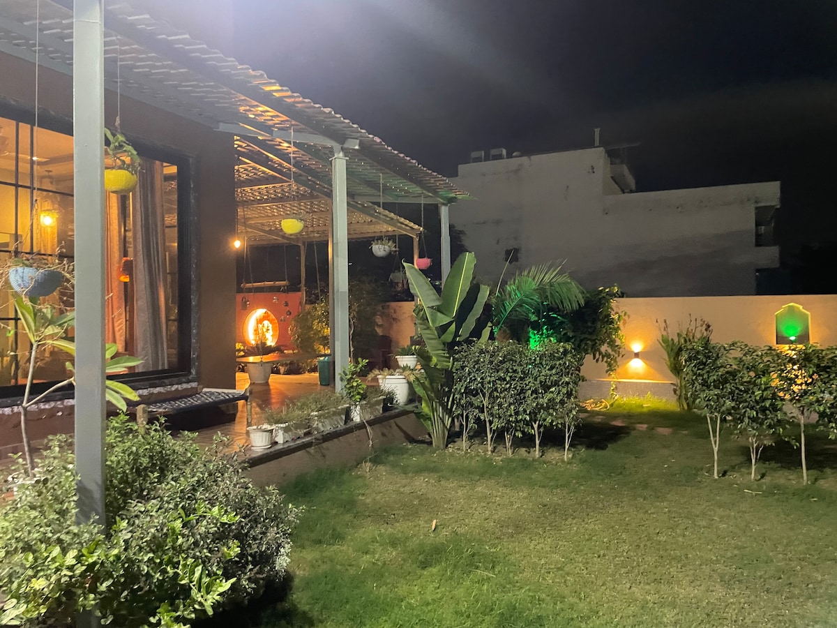 Doživite mir sa boravkom u našoj luksuznoj čistoj vegetarijanskoj kući na samo 30 minuta vožnje od Delhija. Okružen poljima i smešten u bujnom zelenilu, naše mirno prebivalište nudi savršeno okruženje za opuštanje i povezivanje sa prirodom. Sa udobnim sadržajima i dovoljno prostora za okupljanja, naša kuća na farmi je idealna za stvaranje nezaboravnih uspomena sa voljenima.