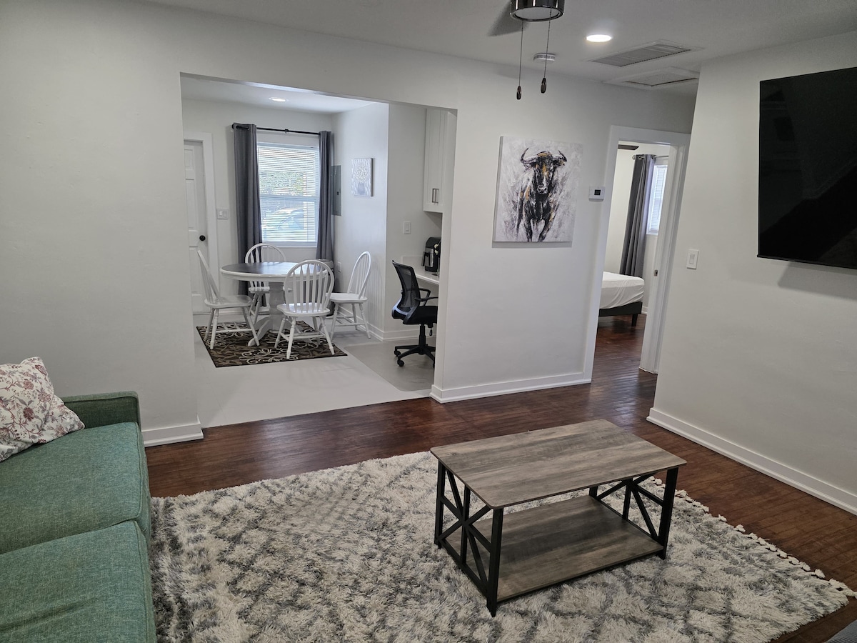 Uživajte u boravku u blizini centra Vest Palm Biča i prelepog mora. Ova mala seoska kuća se nalazi u Istorijskom Nortvudu. Bungalov iz 1920-ih je nedavno renoviran i spreman za goste. Ova lokacija je udaljena samo nekoliko minuta automobilom od ostrva Singer i ostrva Peanut, a na nekoliko koraka od lagune Manati. Centar WPB i ostrvo Palm Bič udaljeni su 10 minuta vožnje. Takođe, postoje kamioni sa hranom direktno preko puta! Nadamo se da ćete uživati u našem malom studiju izvan grada Vest Palm Biča!
