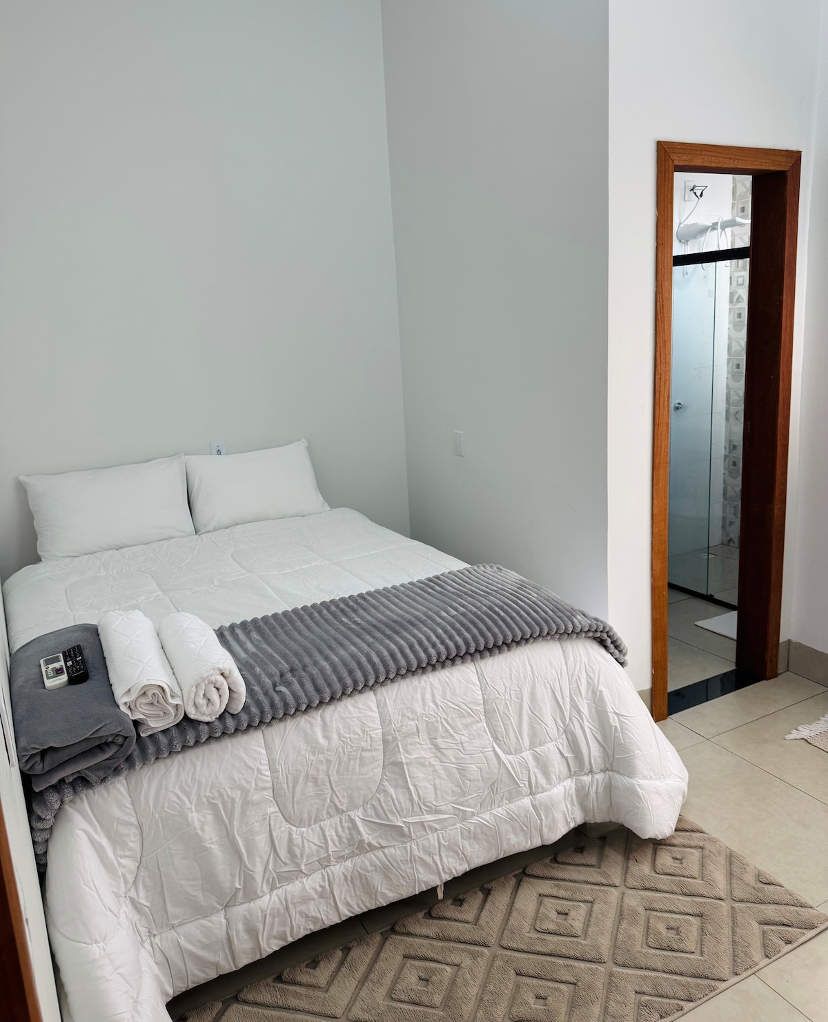 Curta uma experiência de aconchego e lazer ao mesmo tempo, bairro tranquilo, apenas 3 minutos do centro. O quarto é climatizado com ar condicionado split, tem uma cama de casal, um sofá retrátil e colchão auxiliar. Equipado para trabalhar de forma remota, disponibilizamos impressora e Wi-Fi veloz. A casa dispõe de piscina, churrasqueira, cozinha completa. Ideal para relaxar, confraternizar e brincar com as crianças. Desfrutar desse espaço será um diferencial em sua estadia.