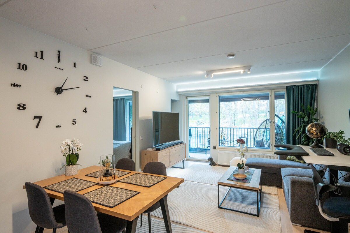 Experience Penthouse living in central Helsinki. Enjoy glassed-in balcony – warm even in early Spring if sun shines. Relax in the sauna, dine & lounge on the balcony while enjoying breathtaking archipelago scenery. A rare gem combining central city vibes, seaside charm, and views to the nature — completing your ultimate Helsinki experience. ✔ Flexible check-in Gym 🛏 2 BR 🅿 Free Parking (EV) 📺 70" Disney+ ⌘12 min to center 👣 Walkable 🏪 Grocery 60m, 24/7 🍕 Good restaurants Park