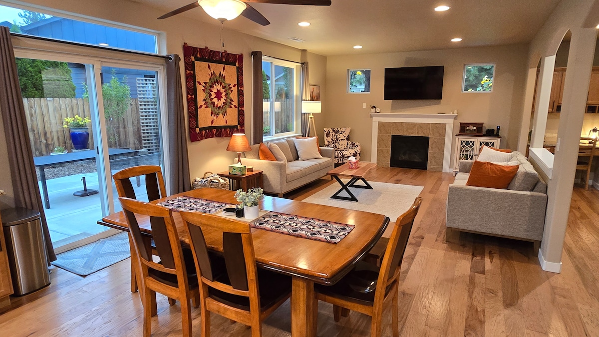 Enjoy our new custom-built ADU located a block away from the Deschutes River in a quiet residential neighborhood, just a 10-minute walk from downtown along the River Trail. In this modern, bright, and private space, you'll enjoy the luxuries of hardwood floors, waterfall countertops, a built-in workspace, heated tile bathroom floors, a 55" Smart TV, BBQ and fire pit, and endless hot water—plus off-street parking and EV charger. One king bed, one daybed with a trundle, and one queen sleeper sofa.
