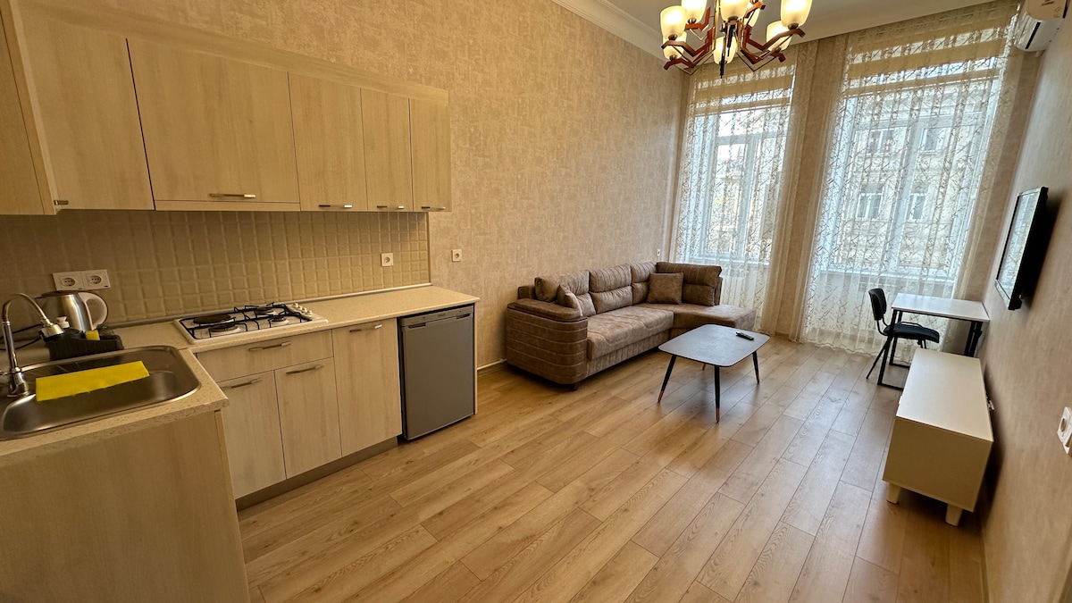 Nedavno renovirani prelepi studio apartman nalazi se u srcu grada i ima kratku PJEŠAČKU udaljenost do glavnih znamenitosti kao što su Targovy ili Nizami Street (2 min), Bulevar Seaside (2 min), Stari grad i sl., kao i veoma jednostavan pristup javnom prevozu (2 minuta hoda do Sahil Metro s/t). Stan je idealan za parove i ima sve prostorije kako bi vaš boravak bio bezbedan i udoban sa opremljenom kuhinjom, mašinom za pranje veša, osnovnom opremom za kupanje, klima-uređajem, higijenskim posteljinom i tuševima, krevetom u punoj veličini, liftom