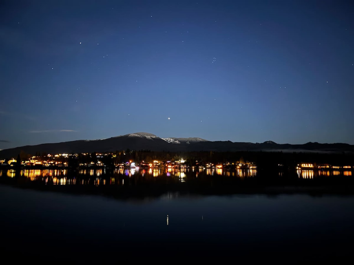 Opustite se u udobnosti, sa pogledom na Samish Bay. Uživajte u zadivljujućim zalascima sunca, lokalnom pristupu plaži, orlovima za ptice svjetske klase, sovama kratkih ušiju, čapljama i još mnogo toga. Samo 10 minuta do čuvenog grada Edisona, sa zanatskim restoranima i lokalnim galerijama. Lokalne pješačke staze kroz šumu + do mora. Privatna terasa sa saunom + hladnim uranjanjem, vanjskim ognjištem + udobnim namještajem za opuštanje. Spavaća soba u potkrovlju, gurmanska kuhinja, brzi Wi-Fi, luksuzni tuš s pločicama i WC u sklopu objekta. Ostrvo Semiš je vožnja ostrvom - nije potreban trajekt.