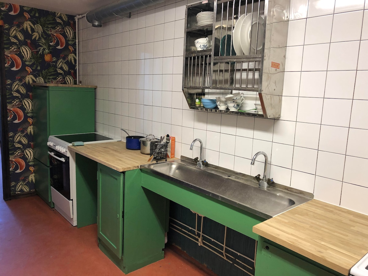 Accommodation with a homely atmosphere with scenic view consists of 9 rooms with 18 beds. Every room has private toilet & Shower Equipped Kitchen is available. Big outdoor space for group activities and grill facility Sports Bar with big TV Vending machine Big Dinning Hall, Billiards, Pingpong table, Children Play zone , Gym, WiFi Sauna is chargeable Big parking space along with El charger Hiking trail - Skaneladen, Swimming, Nature walk, cycling