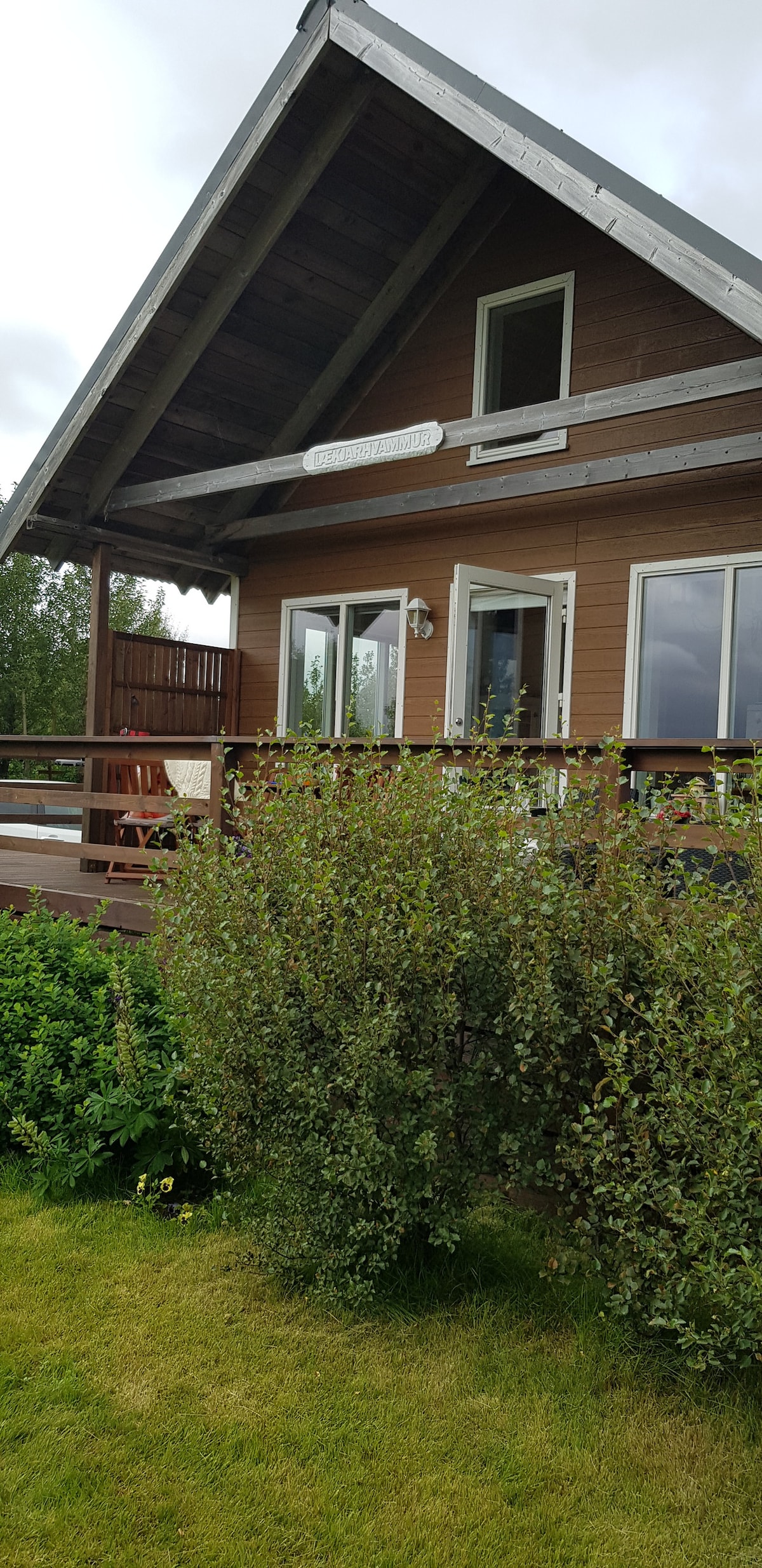 Brvnara je udobna i udobna. Brvnara nudi zadivljujući pogled na planine na jugu Islanda (planina Hekla). Okružena malom šumom, uokvirena poznatom rijekom za ribolov koja se proteže pored brvnare. SJEVERNA SVJETLOST svjetluca u vedrim noćima tokom zime. Tu su potpuno opremljena kuhinja, roštilj na plin, kamin i đakuzi sa hidromasažom. Tu su unutrašnji i spoljašnji tuševi i salon na spratu sa Smart TV-om, uključujući usluge strimovanja.