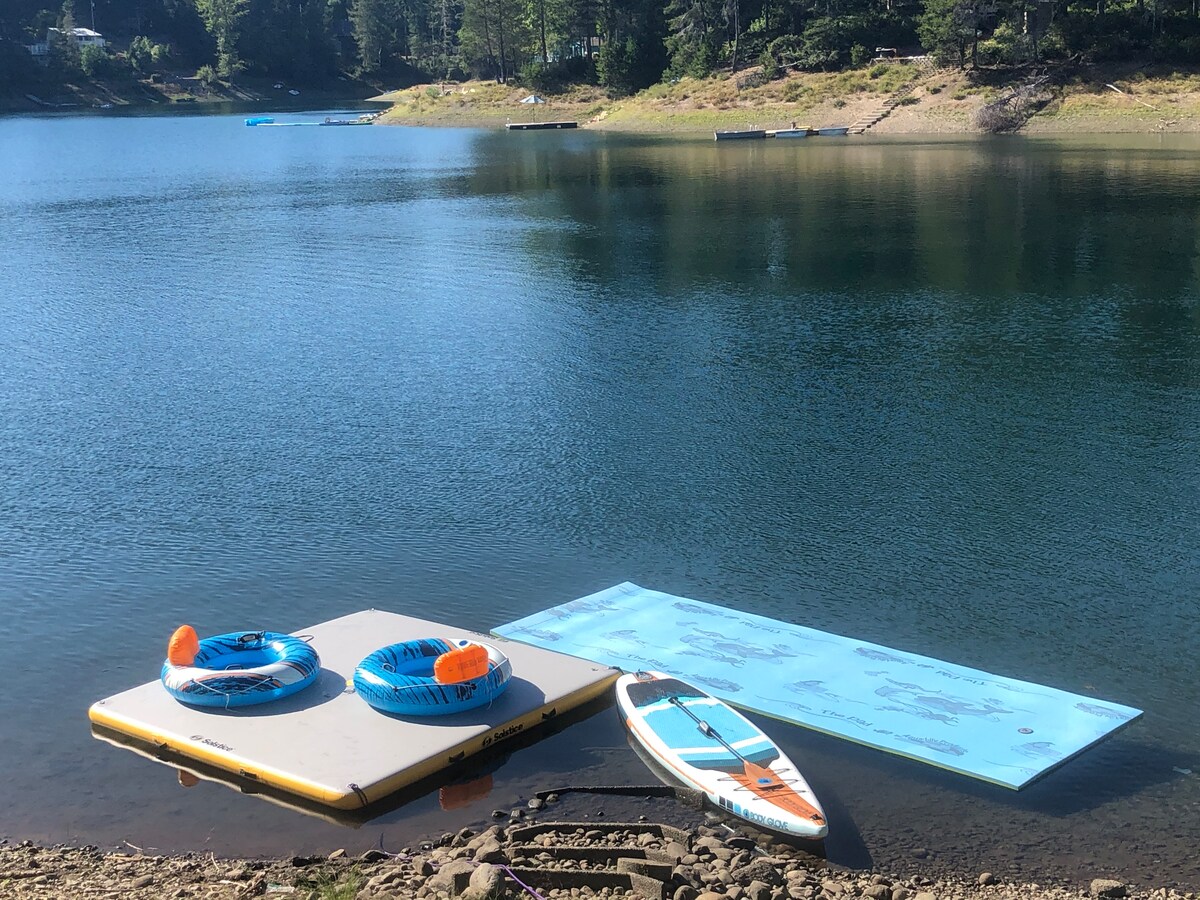 Enjoy the private lakefront and dock from this classic 1-bed + loft A-frame cabin! Recently remodeled kitchen and bath. Great for couples or small families who enjoy the outdoors! The bedroom features bunk beds (perfect for little ones) while the loft features a mid-century modern Queen bed for adults. Basic kayaks, inflatables, and life jackets are provided! Enjoy the peace & serenity of a quiet, non-motorized little lake in the woods in a classic, vintage A-Frame!