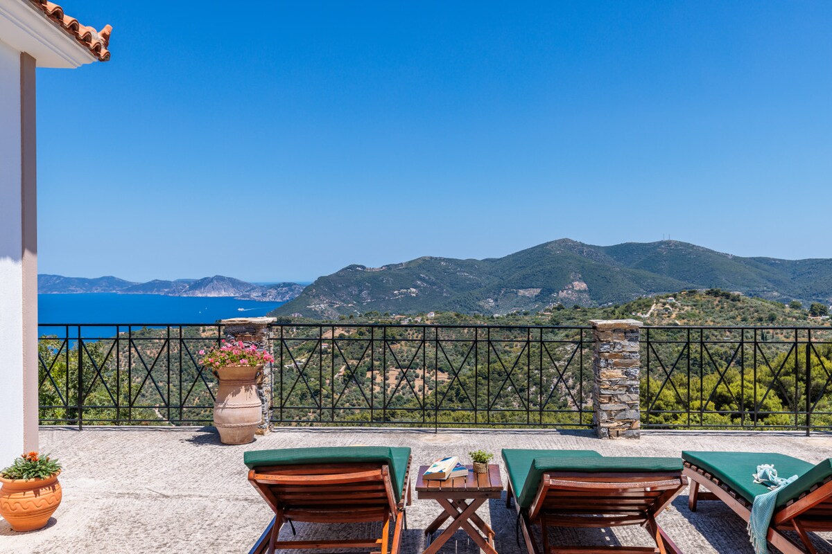 VilaAvaton sa veličanstvenim pogledom na more i grad Skopelos