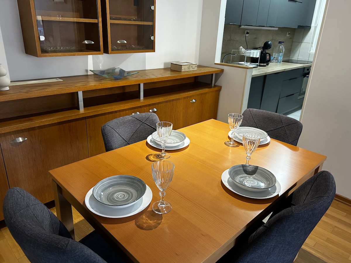 Dvosoban stan koji se nalazi na 5-7 minuta hoda od centra grada, a takođe ima i besplatno 🅿️ mjesto . Pruža sve pogodnosti za prijatan boravak. Vrlo lagan dnevni boravak opremljen velikim kaučem i TV-om ravnog ekrana (satelitski kanali) otvara se prema trpezariji i opremljenoj kuhinji. Spavaće sobe s bračnim krevetom i bračnim krevetom nalaze se jedna pored druge. Završen sa kupatilom sa tušem i čistim peškirima. Stan je klimatizovan i ima besplatan Wi-Fi.